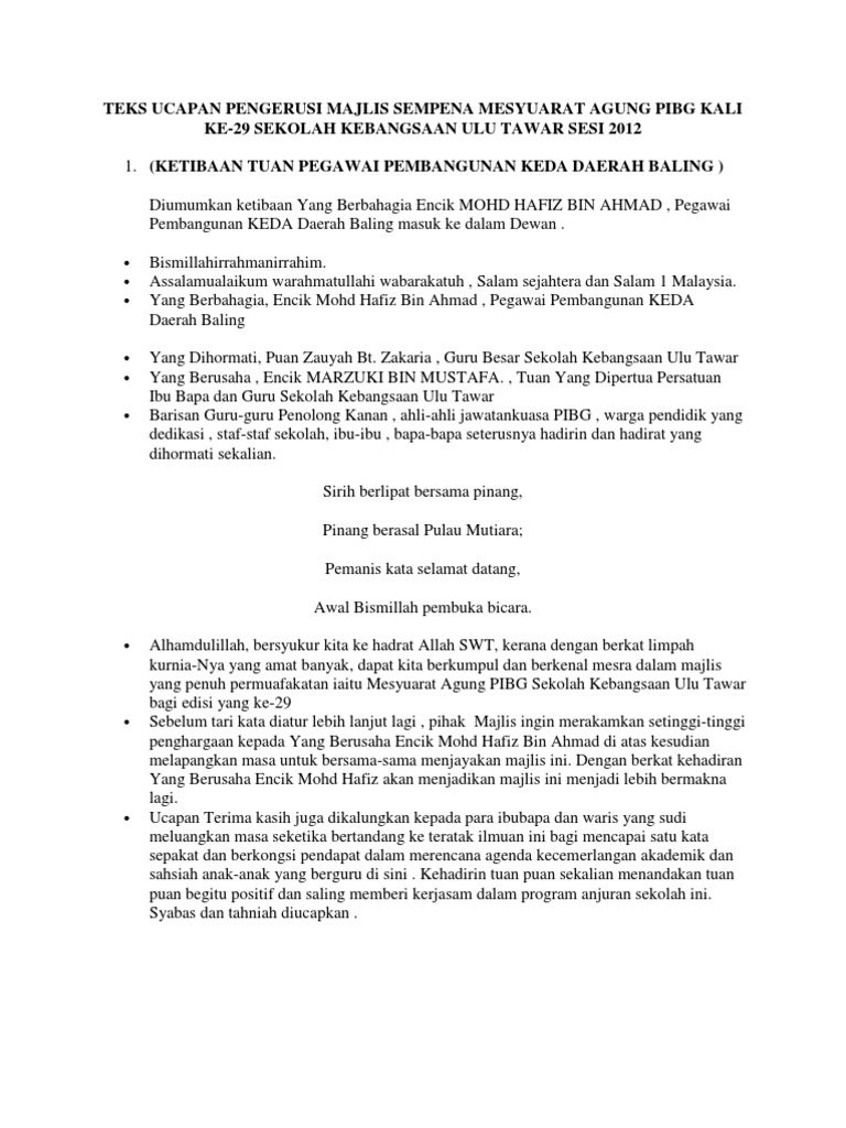 Teks Ucapan Pengerusi Majlis Sempena Mesyuarat Agung Pibg Kali Ke Pdf